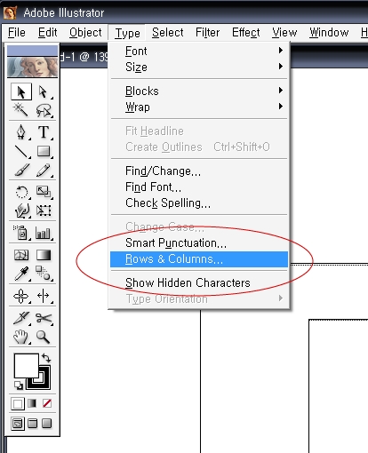 간단한 표그리기좀 할라고 일러스트 10에 있는 Type > Row & Colums를