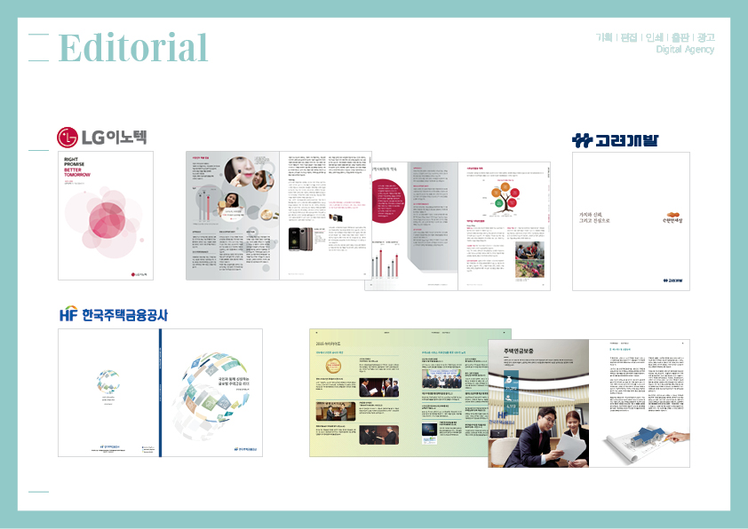 지속가능경영보고서(SR, AR,CSR등), 브로슈어, 카탈로그, 사보, 월간지, 매뉴얼, 포스터, CI & BI, 북디자인, 패키지, 주보디자인에서 인쇄까지…